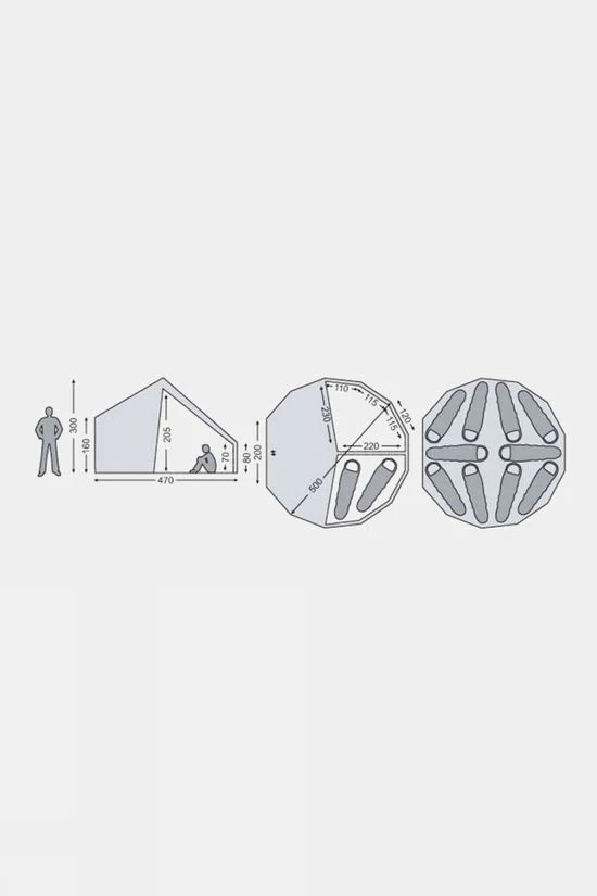 It is easy to put up on a wide range of surfaces while the V pegs have an added hole for extra strength when placed in sandy ground conditions. A compatible zip-in floor is available (sold separately) for added luxury while compatible inner cabins (sold separately) can add some much need privacy when camping in smaller groups.
