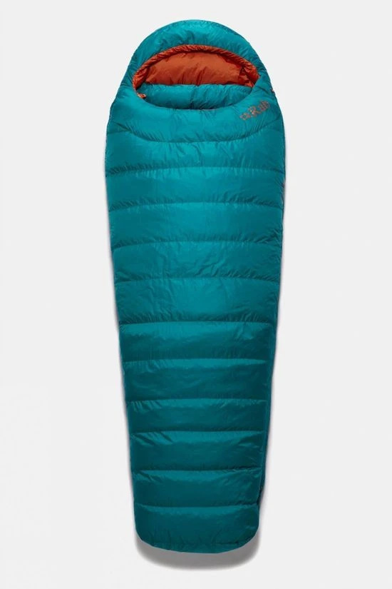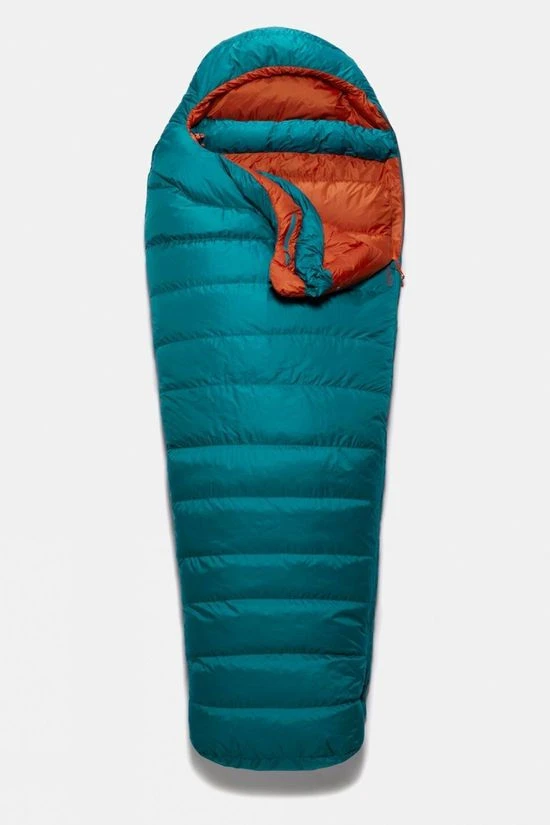 The Ascent is built with a lightweight and durable, recycled Pertex Quantum outer fabric and recycled nylon lining. It has trapezoid shaped and boxwall baffles that stack neatly together, encouraging the hydrophobic duck down inside to loft fully and reducing the appearance of cold spots. The generous mummy fit with wide foot box provide a spacious feel for an easy night’s sleep, and the close-fitting neck baffle with three-quarter length zip keeps the heat in when the temperature drops.