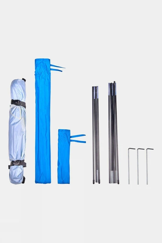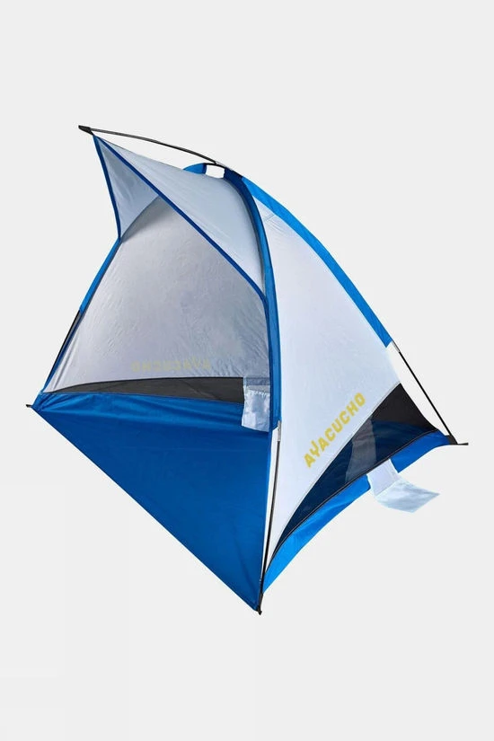 The Ayacucho Sandbars Beach Shelter is made from recycled polyester and protects you from the wind and sun on warm summer days. Sunscreen will still need to be applied to uncovered skin.